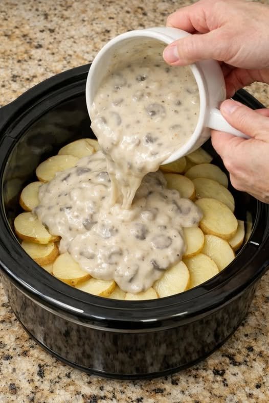 This dish is ideal for busy weeknights, family gatherings, or holiday dinners when oven space is limited. The slow cooking process allows the potatoes to become tender while absorbing the savory flavor of the creamy mushroom sauce. By the time it’s finished, you’ll have a warm, comforting dish with a velvety texture and irresistible aroma.