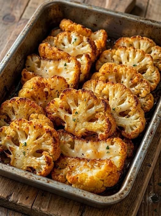 Bake in the preheated oven for 25–30 minutes, flipping halfway through. The cauliflower should be golden brown with slightly crispy edges and tender inside.