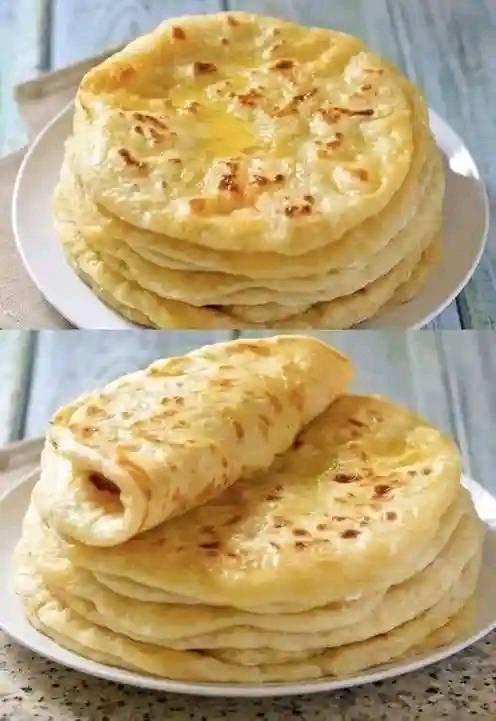 Bazlama is a soft, pillowy Turkish flatbread made with yogurt, flour, and yeast. Traditionally cooked on a hot griddle, this bread is tender inside with golden brown spots on the outside. It’s often compared to naan or pita, but its texture is uniquely fluffy and slightly chewy.