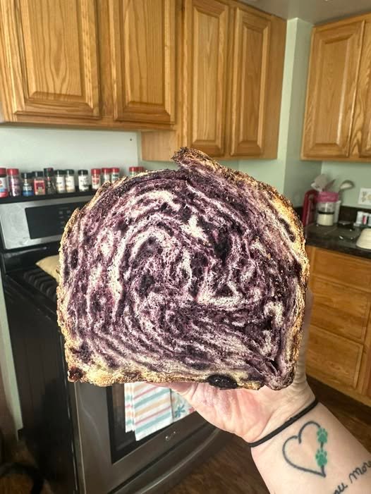 Gently fold in the blueberries to avoid breaking them and turning the batter purple.