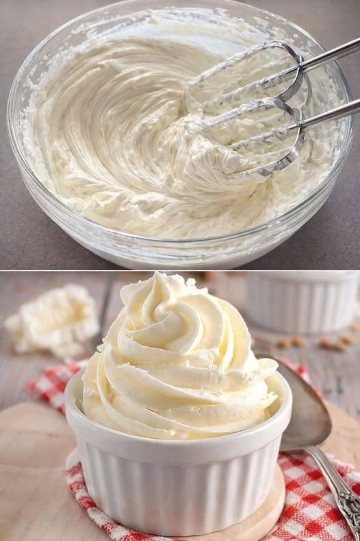 Whipped cream adds air to the dessert, creating the signature fluffy texture.