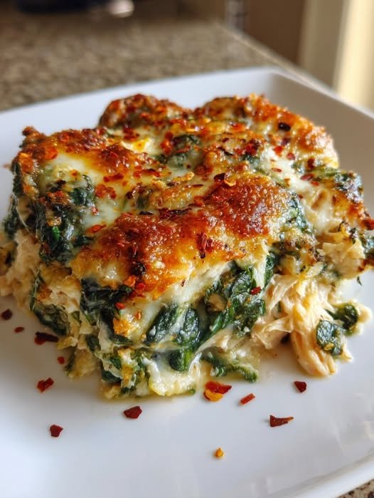 Cheesy Spinach & Chicken Low-Carb Bake (High-Protein) 🥬🧀🍗