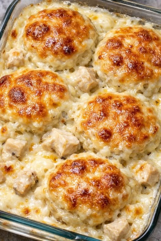 The casserole features juicy chicken pieces cooked in a creamy, savory sauce and topped with soft potato balls that become slightly crispy on the outside while remaining fluffy inside. As the dish bakes, the flavors blend together, creating a warm and comforting meal that both adults and kids love.