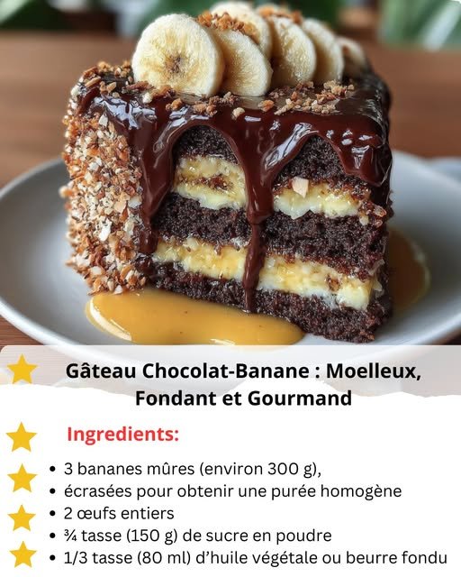 The Chocolate-Banana Cake is a rich, moist, and irresistibly flavorful dessert that combines the natural sweetness of ripe bananas with the deep, indulgent taste of chocolate. This cake is perfect for breakfast, dessert, or a snack, and it appeals to both banana lovers and chocolate fans alike. Its soft, tender crumb and chocolatey richness make it a comforting treat for any occasion.