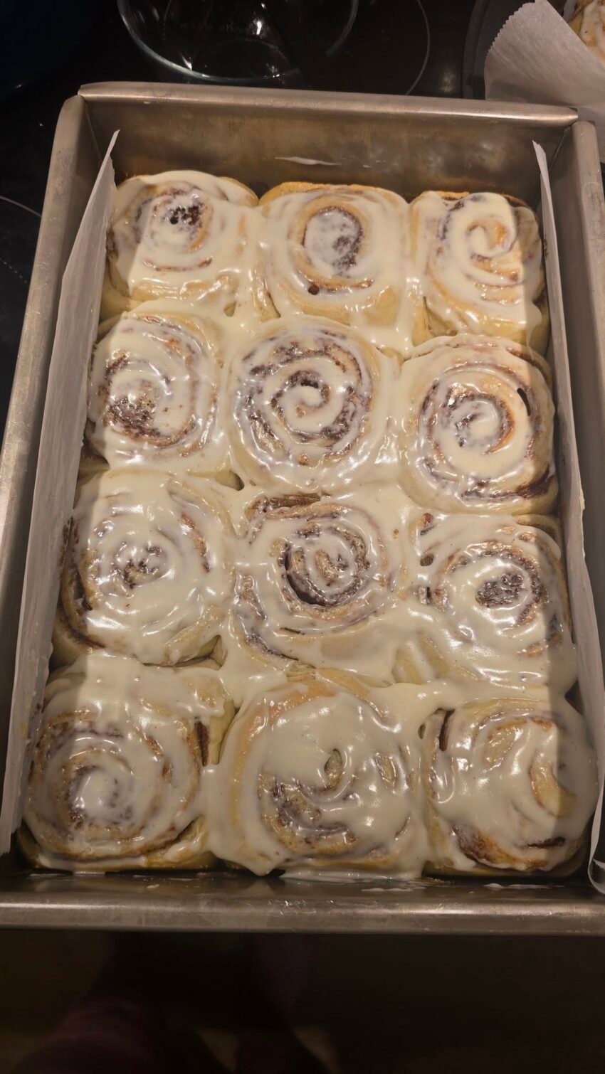 Thick cream cheese icing – Creamy, sweet, and tangy, it balances the richness of the rolls.