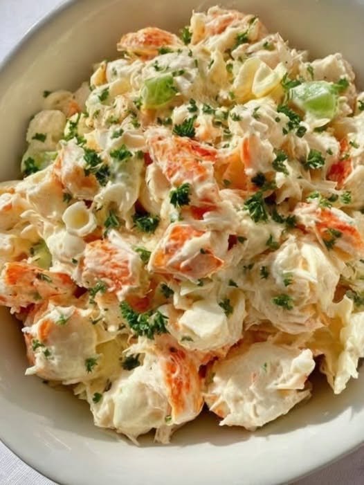 Crab salad is proof that a few fresh ingredients can create something truly special. Its creamy texture, sweet seafood flavor, and crisp vegetables make it both comforting and refreshing.