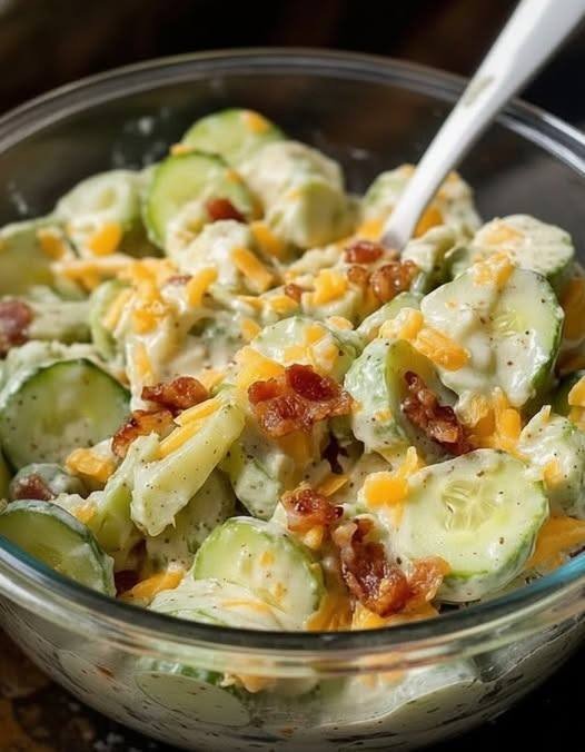 The Creamy Bacon Cheddar Cucumber Salad is a simple yet indulgent way to enjoy fresh vegetables with bold flavors. The combination of creamy dressing, crisp cucumbers, smoky bacon, and sharp cheddar creates a salad that’s both refreshing and satisfying.