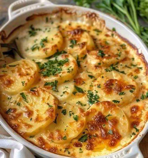 Creamy scalloped potatoes are the ultimate comfort food — tender layers of thinly sliced potatoes baked in a rich, velvety cream sauce until golden and bubbling. This classic side dish pairs beautifully with roasted meats, holiday dinners, or a cozy Sunday meal.