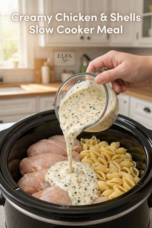 Crockpot Creamy Garlic Chicken Shells – Comfort in Every Bite
