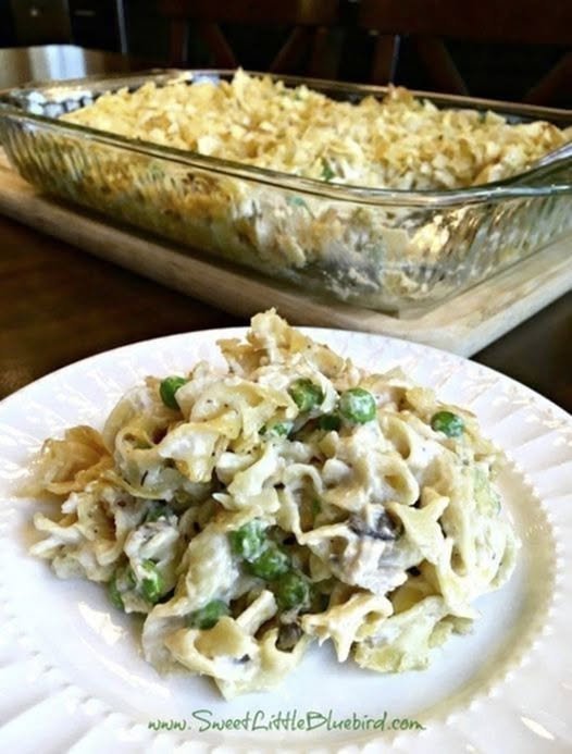 Healthier Version: Use whole wheat noodles and Greek yogurt instead of cream of mushroom soup.