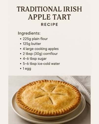 In Ireland, apple tart is often enjoyed with a cup of tea, making it a perfect afternoon or after-dinner treat.